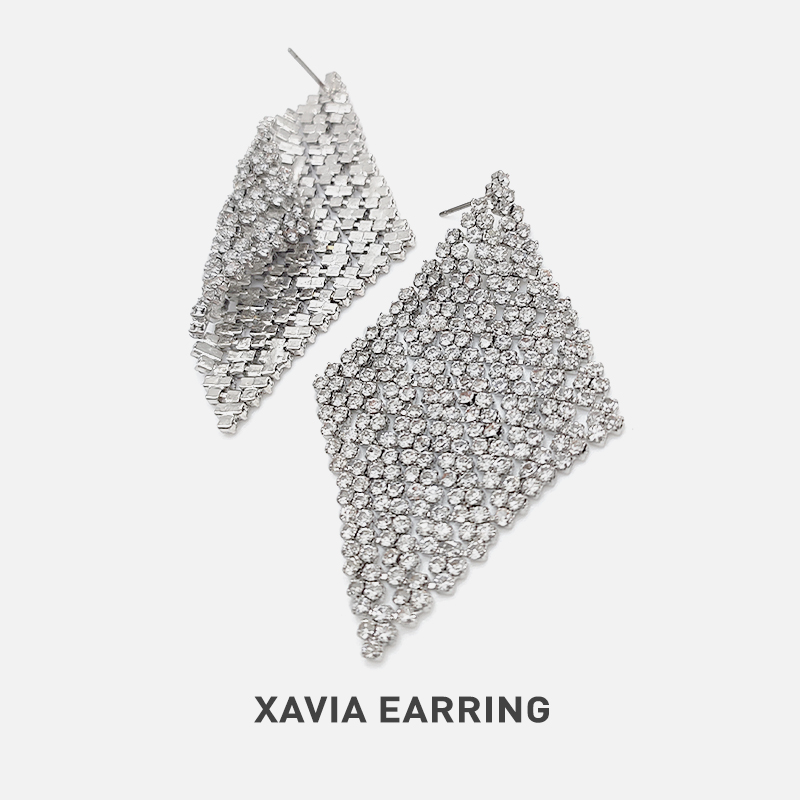 Earrings: Ngang: 4.0 cm | Dọc: 6.5 cm - Chất liệu: Hợp kim mạ (Alloy) - Đá nhân tạo (Rhinestones)