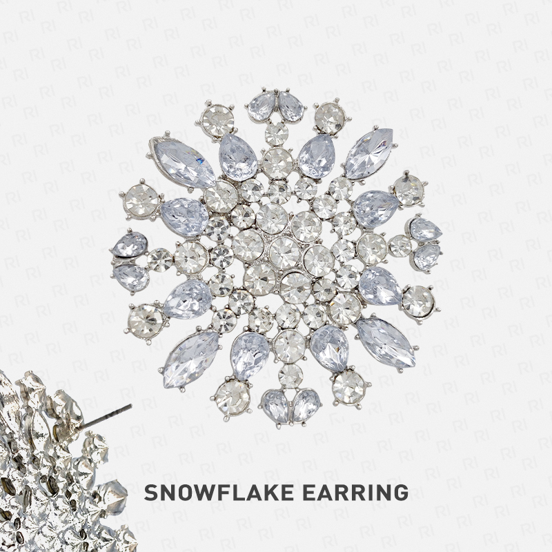 - Kiểu dáng: hoa tai bông tuyết đính hạt bản to